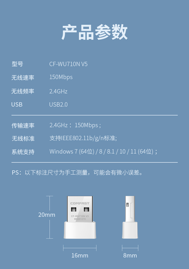 • COMFAST 无线迷你 USB Wifi 适配器